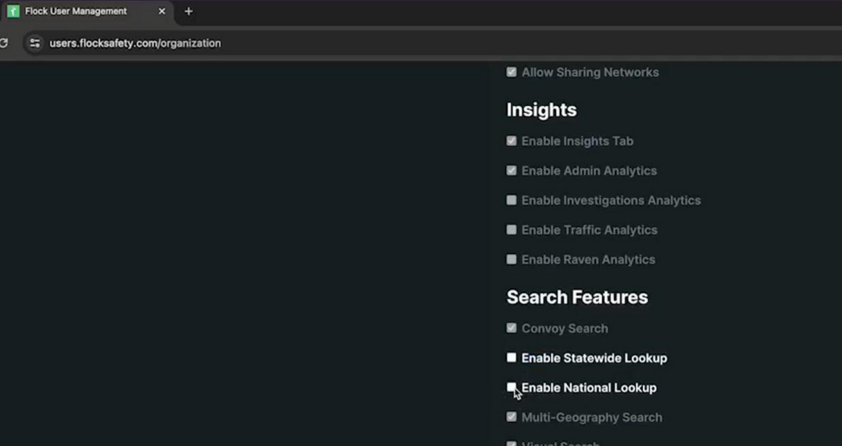 Flock works to make maximum data sharing enticing and easy to opt in to. According a Flock training video obtained through a public records request, all a local law enforcement agency needs to do is click a single checkbox and all of the data gathered is searchable nationally.