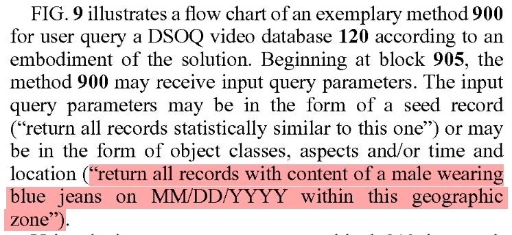 The government says that certain beliefs are indicators of "domestic terrorism". To prosecute for domestic terrorism, they need tools to identify and monitor people who hold those beliefs. The above patent allows Flock Safety to capture images and video, upload them to cloud storage, and make the inventory of images and video easily searchable for law enforcement.